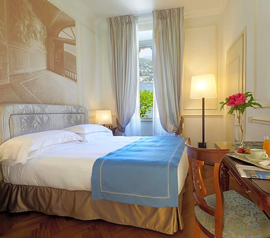 Located in the new wing or main building, it offers partial views of Lake Como.